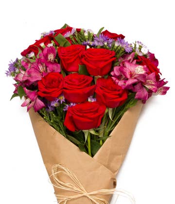 The Iris & Freesia Delight bouquet is a sweet purple presentation of beauty and delight! Stunning lavender freesia, purple irises, and purple asters are arranged with other soft flowers for a look that is simply beautiful.
