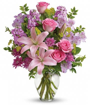 This delivered arrangement features luxury snapdragon, pink lily, jade gladiolus stems and more. It's a beautiful way to offer thoughts of condolence or to pay your respects. This lovely flower centerpiece makes a caring tribute for sympathy, funeral, viewing or wake events. Send this large floral bouquet today to honor a friend, colleague or family member. *Please note big lily bouquets like this may take a few days to bloom to their full beauty. They should not be in full bloom when delivered correctly.