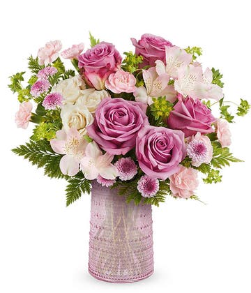Gorgeous pinks in a wild floral arrangement, is the perfect way to bring a garden into your home. Beautiful and fragrant, this bouquet is the perfect gift to celebrate an anniversary, just because, or to cheer someone up.