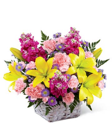 The Flowing Flowers Arrangement brims with exquisite blooms that express tribute to the life of the deceased at their final farewell service. Beautiful lavender roses, pink gladiolus, pink hydrangea, purple dendrobium orchids, and purple larkspur burst with vibrant beauty and are expertly arranged in a papier maché urn. The floral arrangement makes for a stunning display symbolizing the wonderful life of the departed.