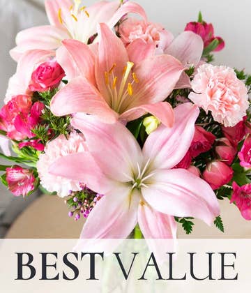 • For one-of-a-kind flower arrangements, such as all roses or all lilies, we will make every attempt to match the flower type, but may substitute with another color.
