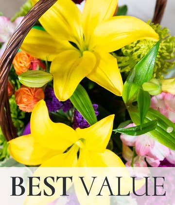 • For one-of-a-kind flower arrangements, such as all roses or all lilies, we will make every attempt to match the flower type, but may substitute with another color.